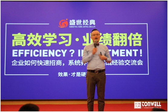 騰威科技2021年品牌戰略策劃合作伙伴——盛世經典,特派華南區總經理何燕玲先生蒞臨大會現場,帶來了一堂別開生面的學習課程,涵蓋品牌建設戰略體系講解、營銷工具落地應用和“客戶精贏之道”。這一系列的操作下來,不僅更加地讓品牌接近到目標客戶群體;更是從思維層面到方法論,讓經銷商、加盟商掌握一條關于終端運營、工程渠道擴張快速進階的方法。在場觀眾掌聲雷鳴,表示收獲頗豐。