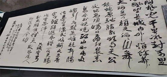 中國佛山書法家、佛山大學教授武多義用一副《沁園春雪》拉開本次“匠心藝境 企動中國”——暨中國佛山美術家協會助力菲思盾產品風格升級座談交流會的序幕。