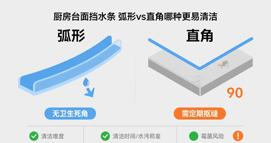 最近,“松弛感裝修”刷爆小紅書和抖音——年輕人不再追求“樣板間式完美”,而是更在意“好打理、少操心、不返工”。可回到現實,多少人嘴上喊著松弛,一進廚房卻被油漬水垢逼到崩潰?尤其是臺面與墻面接縫處那條“擋水條”,看似不起眼,實則藏著清潔地獄的入口!有人選直角擋水條,覺得“經典耐看”;有人選弧形擋水條,宣稱“一擦即凈”。到底哪種設計更符合當代“懶人精致主義”?今天我們就用實測+設計師訪談+主婦經驗,徹底扒一扒擋水條的清潔真相!